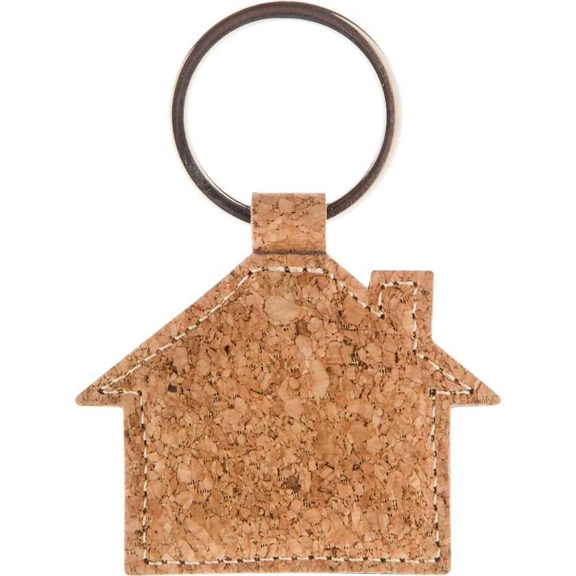 Llavero de corcho con forma de casa. Se personaliza con impresión en un color o con grabado láser. Perfecto para inmobiliarias y constructoras.