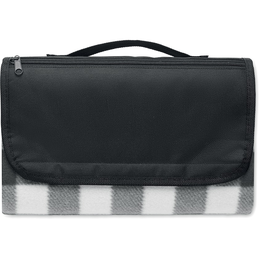 Manta polar ecológica con parte inferior impermeable. La manta Silverdale está fabricada con rPET, es decir, botellas PET recicladas. Tiene un bolsillo con cremallera en la parte frontal.