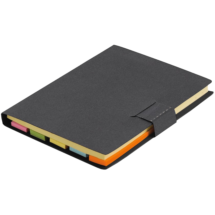 Set de marcapáginas y bloc de notas. Tanto los marcadores como el bloc de notas tienen 25 hojas cada uno. El set en negro tiene el interior negro, y el set en azul y color natural tiene el interior blanco.