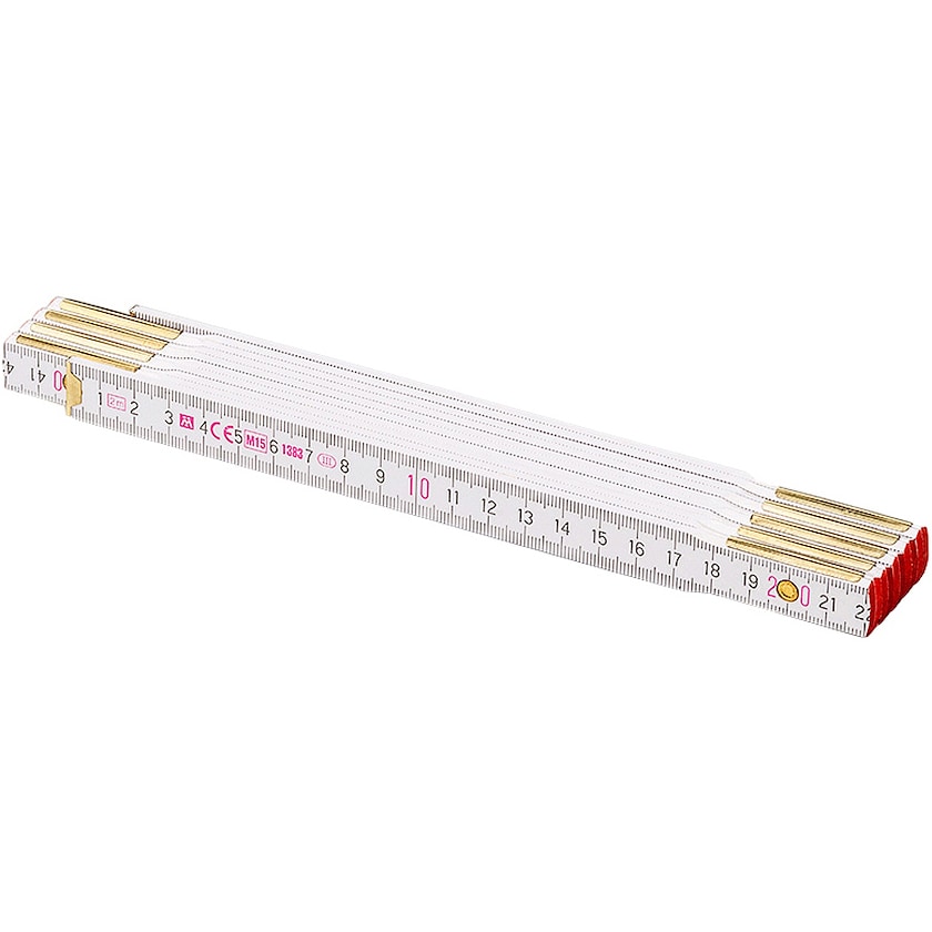Metro plegable de madera personalizado con un precio atractivo. El metro plegable Primera es de madera de buena calidad y tiene juntas de acero. La madera está pintada con dos capas de pintura y una capa protectora. El metro se fabrica y se imprime en la UE y cumple con el certificado de examen de tipo CE, con clase de precisión III de la CE y con la normativa de la CE.