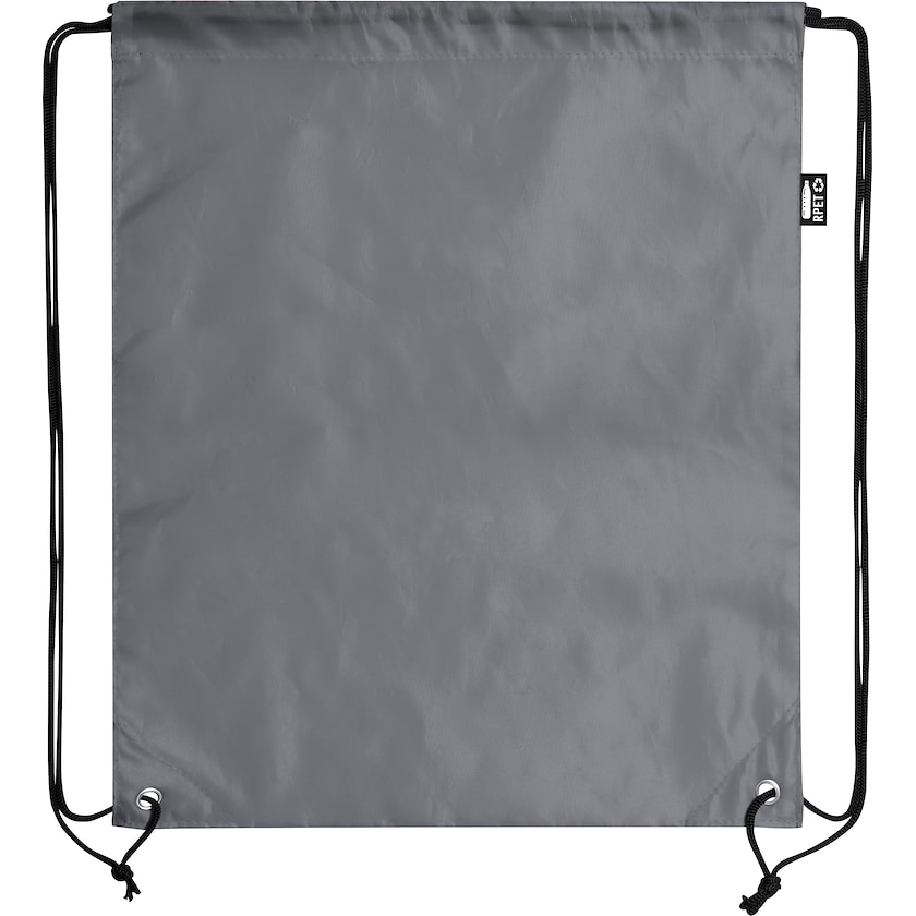 Mochila de cuerdas ecológica de rPET, es decir, de botellas PET recicladas. La bolsa tiene una pequeña etiqueta que indica que ha sido fabricada con rPET. Una opción respetuosa con el medio ambiente.