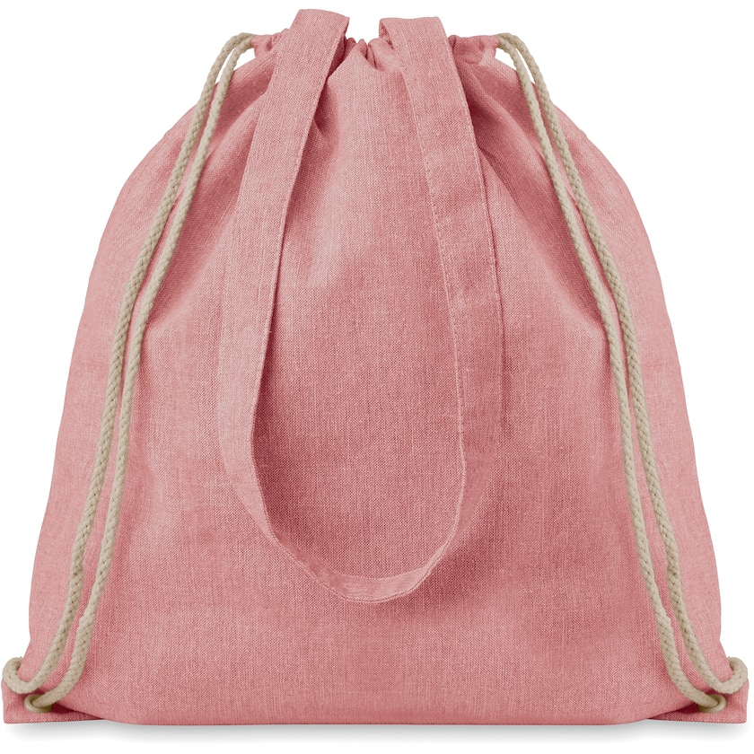 Mochila de cuerdas ecológica fabricada con algodón reciclado y poliéster reciclado. La mochila Luna tiene también asas largas para poder llevarla en la mano.