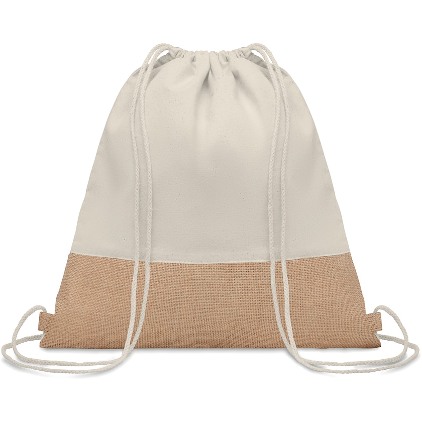 Mochila de cuerdas con la parte inferior de yute. El tejido de algodón es sarga de 160 gramos. Una mochila de cuerdas de un material natural fantástico.