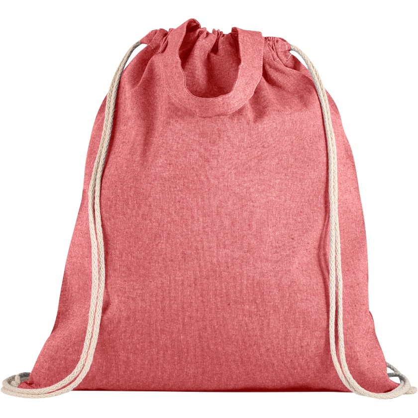 Mochila de cuerdas de 100% algodón reciclado. Además de las cuerdas, la mochila Meghan tiene asas cortas para poder llevarla en la mano. Una mochila práctica y ecológica.