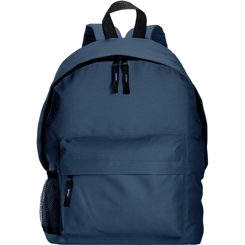 Mochila personalizada con un precio muy bajo. Perfecta para grandes campañas publicitarias. Está disponible en muchos colores. Además del compartimento principal, tiene un bolsillo frontal con cremallera y un bolsillo de red en un lateral.