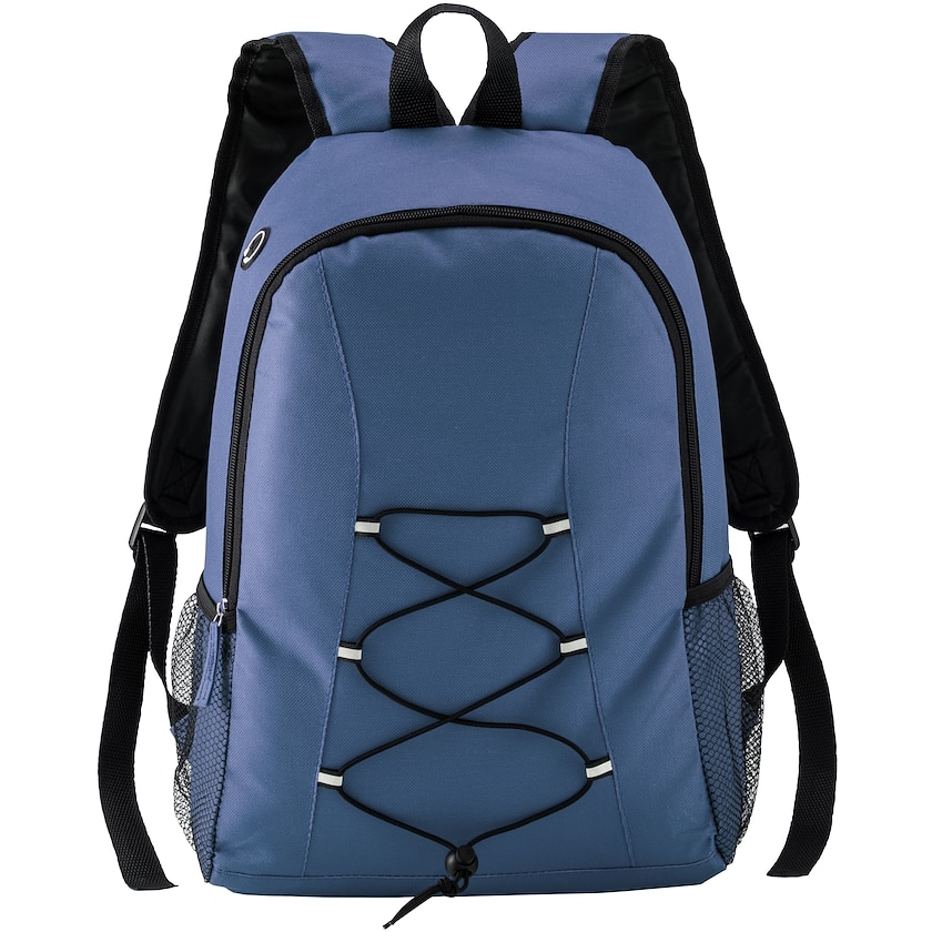 Mochila personalizada económica. La mochila tiene dos bolsillos de red en los laterales. La espalda y las correas están acolchadas. Solo es posible realizar la impresión en un color.