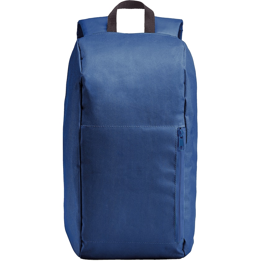 Mochila económica en formato compacto. Tiene un bolsillo frontal con cremallera. La espalda y las correas están acolchadas.
