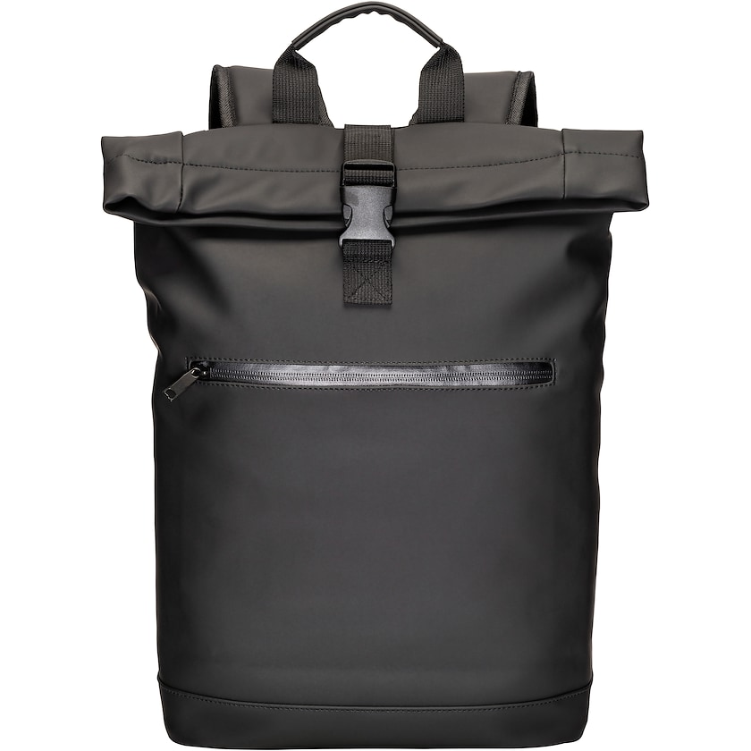 Mochila impermeable roll-top personalizada. Dentro tiene un bolsillo acolchado para un portátil de 15 pulgadas. La cremallera está reforzada para que no pase el agua. Impresión en un color.