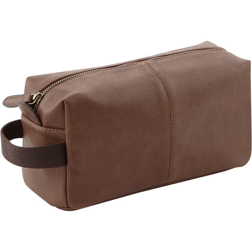 Exclusivo neceser de cuero sintético. El interior del neceser es de un tejido de rayas fácil de limpiar. En el interior hay bolsillos para accesorios pequeños. El neceser tiene 3 litros de capacidad.