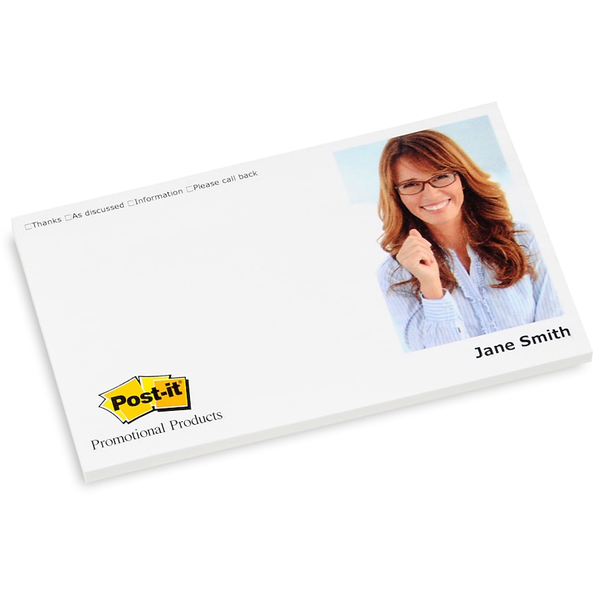 Notas adhesivas con una superficie de escritura mayor. Con el logotipo de tu empresa es una fantástica plataforma publicitaria. Adhesivo en el lado más largo.