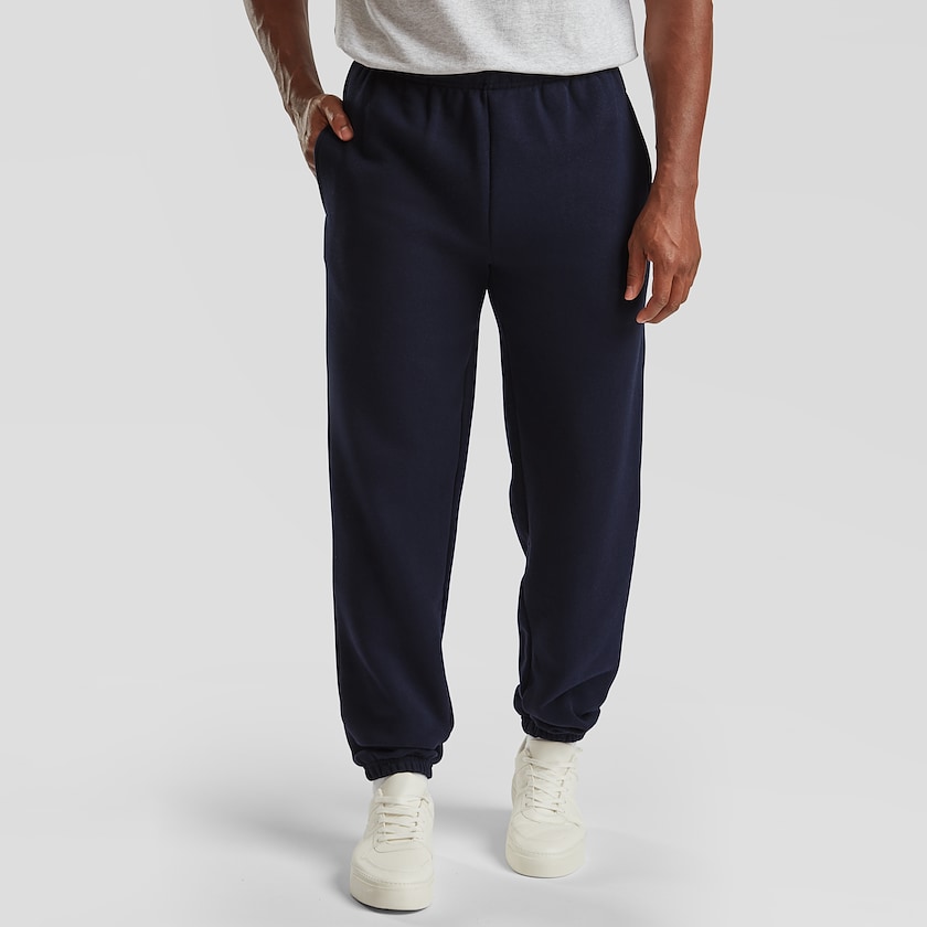 Unos pantalones de deporte personalizados y de calidad de Fruit of the Loom. Este modelo tiene una resistente mezcla de poliéster que hace que los pantalones sean más duraderos y aguanten más lavados que los modelos clásicos. Tienen tobillos elásticos. Se envían en bolsas de plástico individuales. También disponible como modelo de niño.