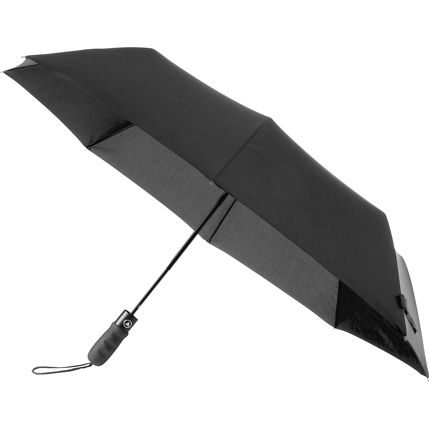 Exclusivo paraguas compacto personalizado. El paraguas tiene eje y varillas de metal. El mango resulta muy cómodo de sujetar. Con plegado automático.