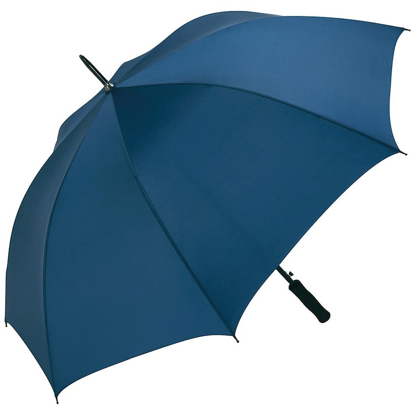 Paraguas de golf resistente a tormentas con un precio atractivo. Las varillas son de fibra de vidrio resistente y el eje es de acero galvanizado. El mango tiene una agradable superficie de goma.