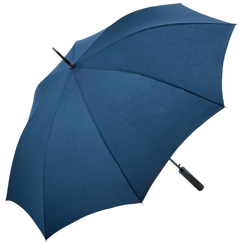 Paraguas resistente con estructura resitente a tormentas. Las varillas son de fibra de vidrio y el eje es de acero galvanizado. Tiene apertura automática.