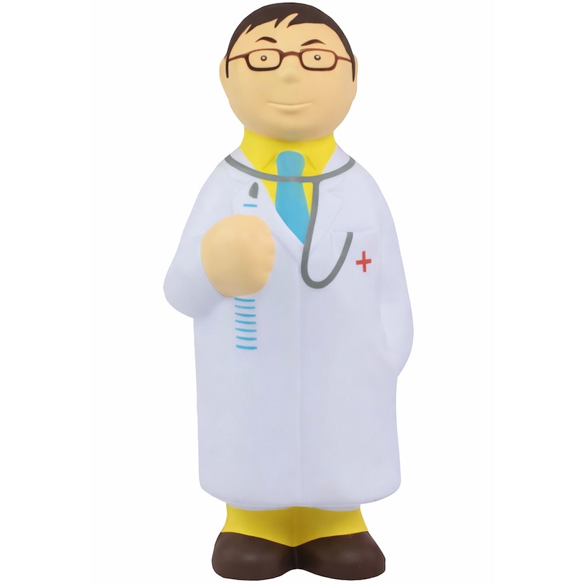 Pelota antiestrés con forma de médico con bata. ¡Pide ayuda a un médico para librarte del estrés! La impresión es de la mejor calidad.
