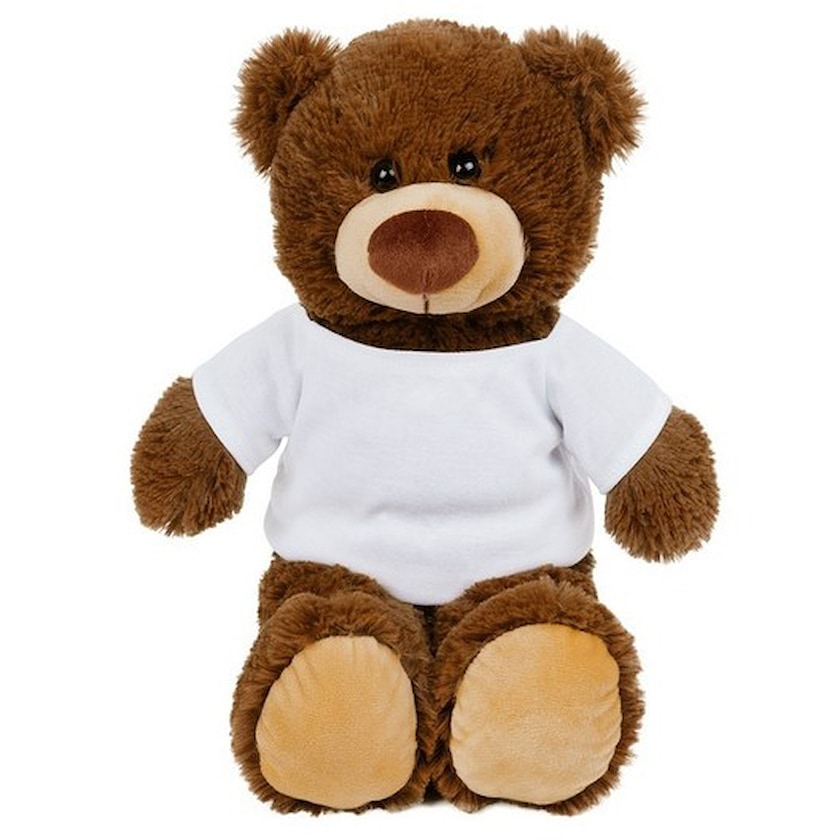 Oso de peluche marrón con camiseta blanca. La impresión se realiza en la camiseta. La camiseta viene por separado. Un oso de peluche abrazable que sin duda será el favorito de cualquier niño.
