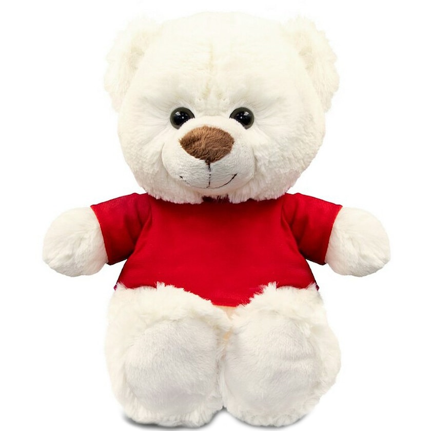 Gran osito de peluche blanco con camiseta roja. Tiene una altura de 27 cm. La camiseta se envía por separado.