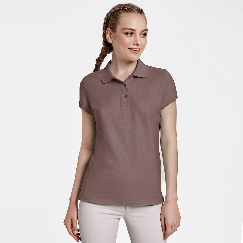 Polo de mujer económico con entrega ultrarrápida. El polo se fabrica con un tejido de algodón de 200 gramos y tiene tres botones en el cuello. Este modelo talla pequeño, así que aconsejamos elegir una talla más grande de lo habitual. También disponible como modelo de hombre.