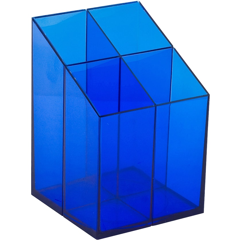 Portalápices de plástico transparente. Regal tiene cuatro espacios para guardar bolígrafos. Su forma permite guardar lápices de menor tamaño.