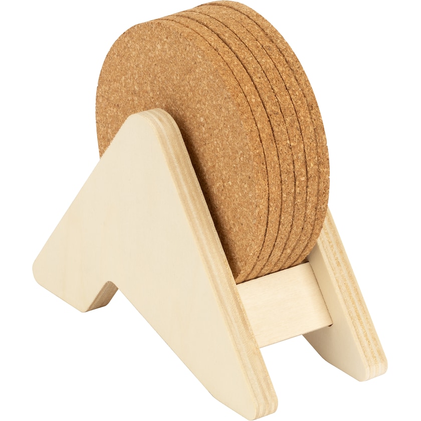 Set de 6 posavasos de corcho. El set incluye un soporte de madera contrachapada. Dado que el producto se fabrica con materiales naturales, el color y los resultados de la impresión pueden variar ligeramente entre productos.