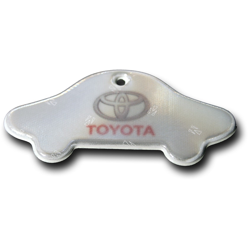 Reflectante blando con forma de coche. El reflectante perfecto para concesionarios y firmas de coche. Se entrega con una cuerda y un imperdible o con cadena de metal. El material reflectante cumple con la normativa EN13356:2001. La impresión se realiza bajo la superficie reflectante.