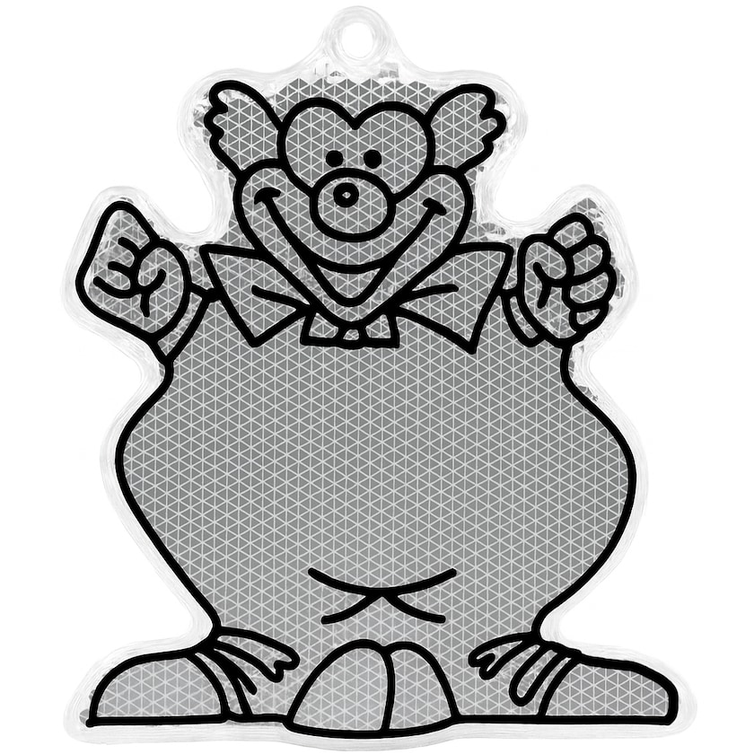 Divertida placa reflectante en forma de payaso. La placa original no está impresa y los contornos del payaso se imprimen en la misma tinta que tu diseño de impresión.
