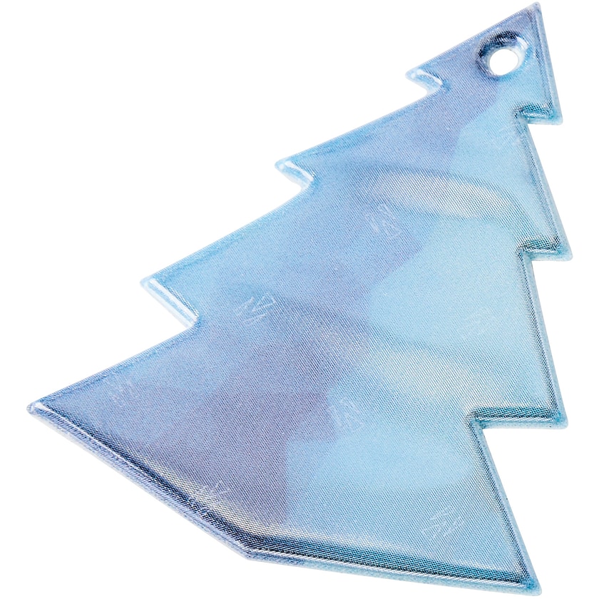 Reflectante de material blando con forma de árbol. Se entrega con una cuerda y un imperdible o con cadena de metal. El material reflectante cumple con la normativa EN13356:2001. La impresión se realiza bajo la superficie reflectante.