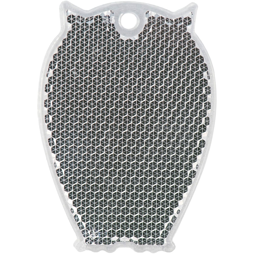 Reflector con forma de búho. Un clásico entre los reflectantes. Fabricado en Europa y certificado según la norma CE EN 17353:2020 B1. Disponible con cordón y imperdible o con eslabón de bola.