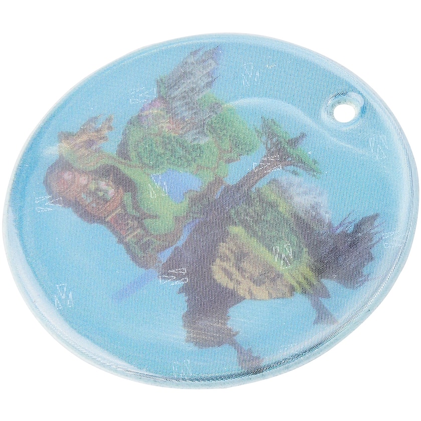 Reflectante circular de material blando. Se entrega con una cuerda y un imperdible o con cadena de metal. El material reflectante es de Scotchlite de 3M y está aprobado y cumple con la normativa EN13356:2001. La impresión se realiza bajo la superficie reflectante.