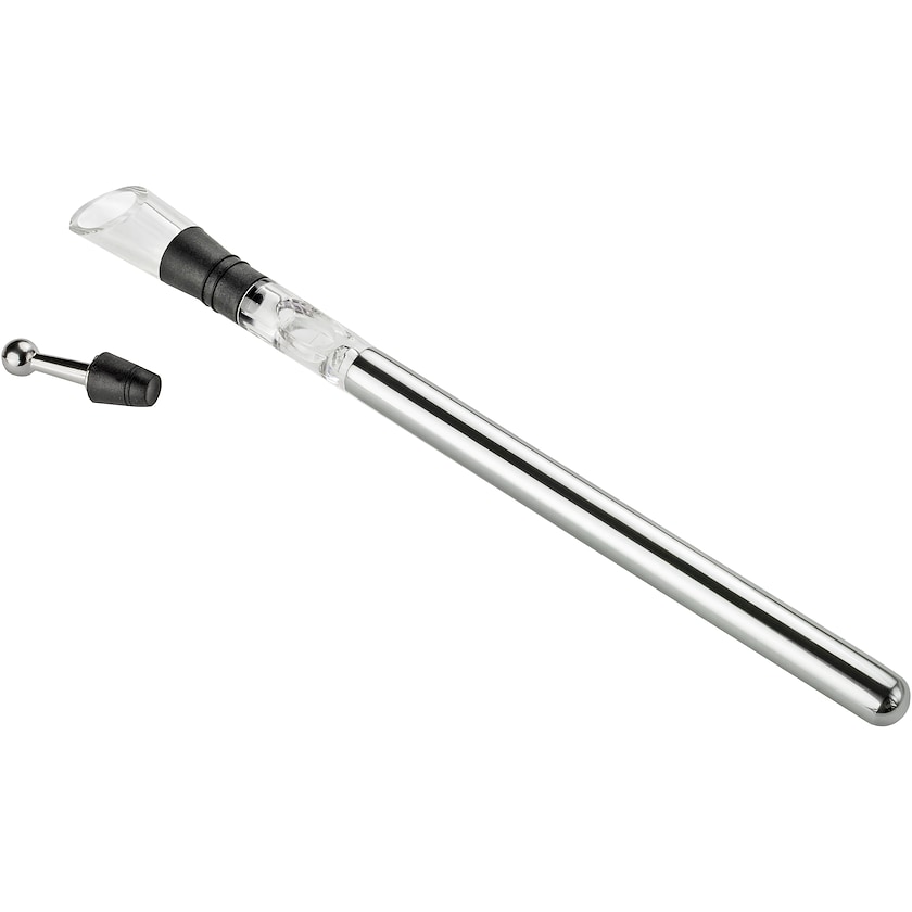 Exclusivo set con vertedor y enfriador. El enfriador se coloca en el congelador antes de usarlo y mantiene el vino a la temperatura adecuada. El vertedor también cierra la botella para que el aroma no salga de la botella. El set viene en una elegante caja de regalo negra. La impresión se realiza en la caja.