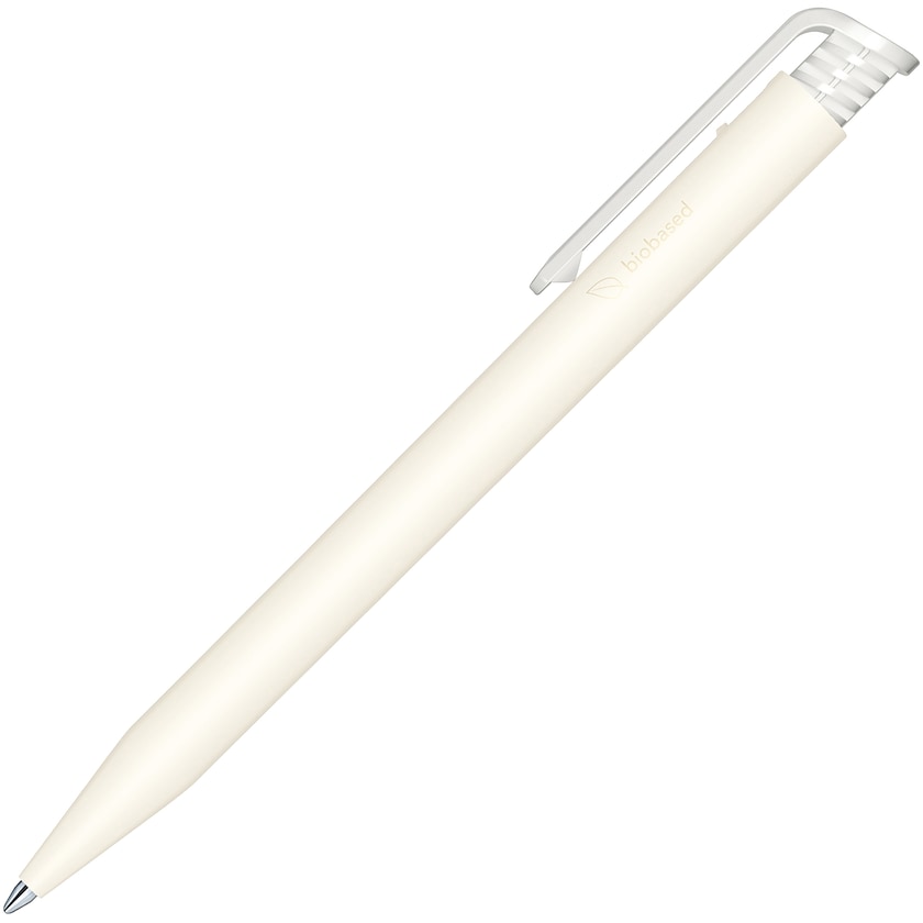 Bolígrafo ecológico de gran calidad. El bolígrafo es de bioplástico y tiene una bonita superficie mate. En el extremo hay una marca con el texto "biobased".