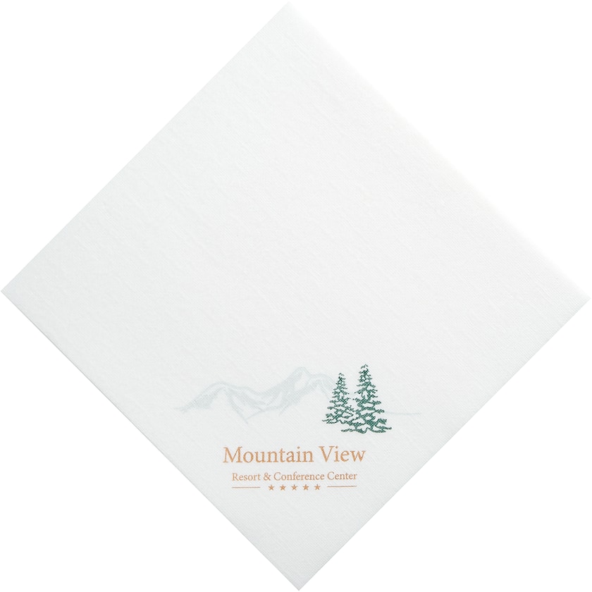 Servilleta grande y exclusiva con tacto textil. La servilleta se entrega doblada en 4 partes y tiene unas dimensiones de 19,5 x 19,5 cm. Cuando está estirada, la servilleta mide 39 x 39 cm. La servilleta es perfecta para restaurantes y otros establecimientos donde es importante causar una buena impresión. El material tiene aspecto y tacto textil y la servilleta es más gruesa y absorbente que las servilletas de papel convencionales. La servilleta tiene la aprobación 4764801 para contacto con alimentos.