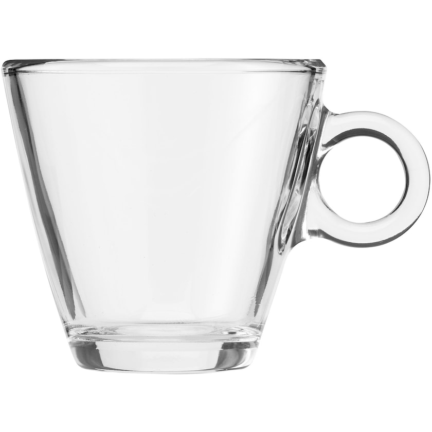 Taza de cristal ideal para café o cappuccino. Es de cristal templado de gran calidad. Se fabrica en Italia. Se personaliza con grabado láser.