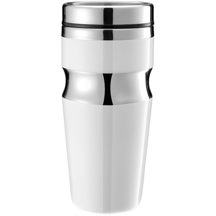 Elegante taza metálica que se entrega en una caja de regalo de diseño. Countour es antifugas gracias a su práctica tapa con boquilla. Diseño registrado.