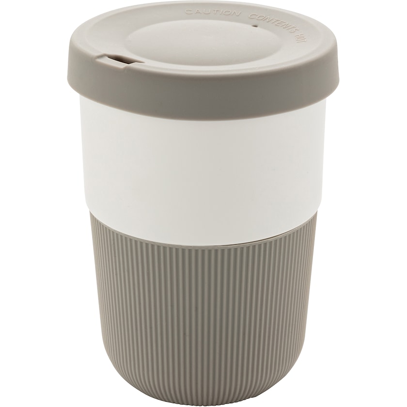 Taza para llevar ecológica. La taza Saratoga está fabricada con PLA o ácido poliláctico, un material biodegradable de forma natural. La tapa y la zona de agarre son de silicona. Una taza elegante y respetuosa con el medio ambiente.