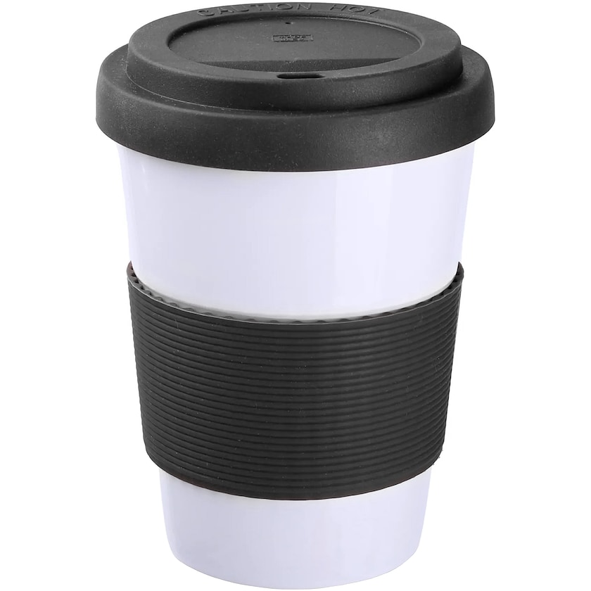 Taza takeaway de porcelana con tapa y agarre de silicona. Portland Classic tiene doble pared para mantener la bebida caliente más tiempo.