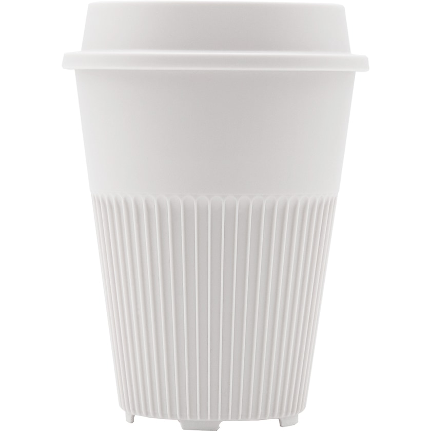 Taza takeaway de Circular & Co. La taza es resistente, reutilizable, apilable y completamente reciclable. Las marcas exteriores evitan que la taza se caliente en exceso y proporcionan un buen agarre. La base es de secado rápido. La tapa tiene una práctica abertura para beber. Ideal para el portavasos del coche o para la cafetera del trabajo. Segura para alimentos y sin BPA. Se puede lavar en lavavajillas en la cesta superior.