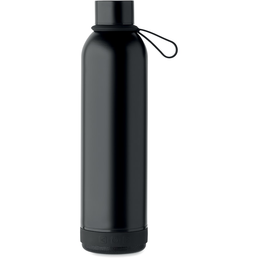 Termo con un altavoz inalámbrico extraíble. El termo tiene doble pared con aislamiento por vacío y está fabricado en 90% acero inoxidable reciclado y 10% acero normal. Antifugas. El altavoz se debe quitar para lavar el termo.