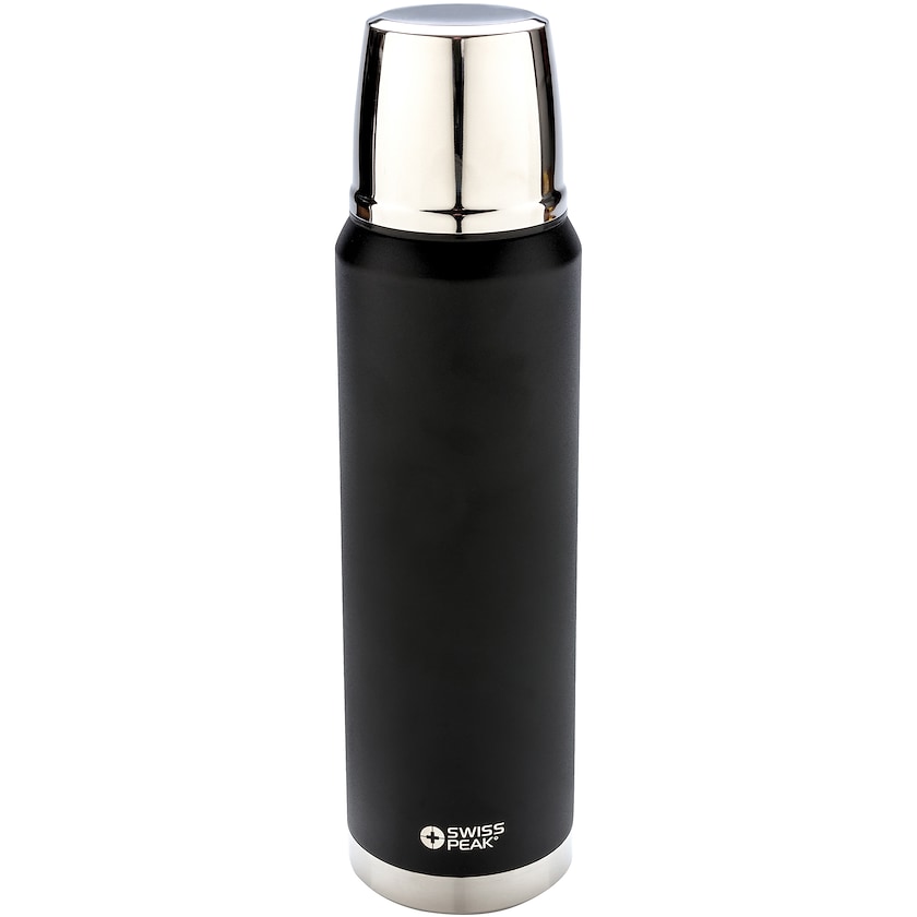 Termo de 1 litro de gran calidad de la marca Swiss Peak. Es de acero inoxidable con interior de cobre. El termo mantiene la bebida caliente hasta 8 horas y fría hasta 24 horas. Se debe lavar a mano.