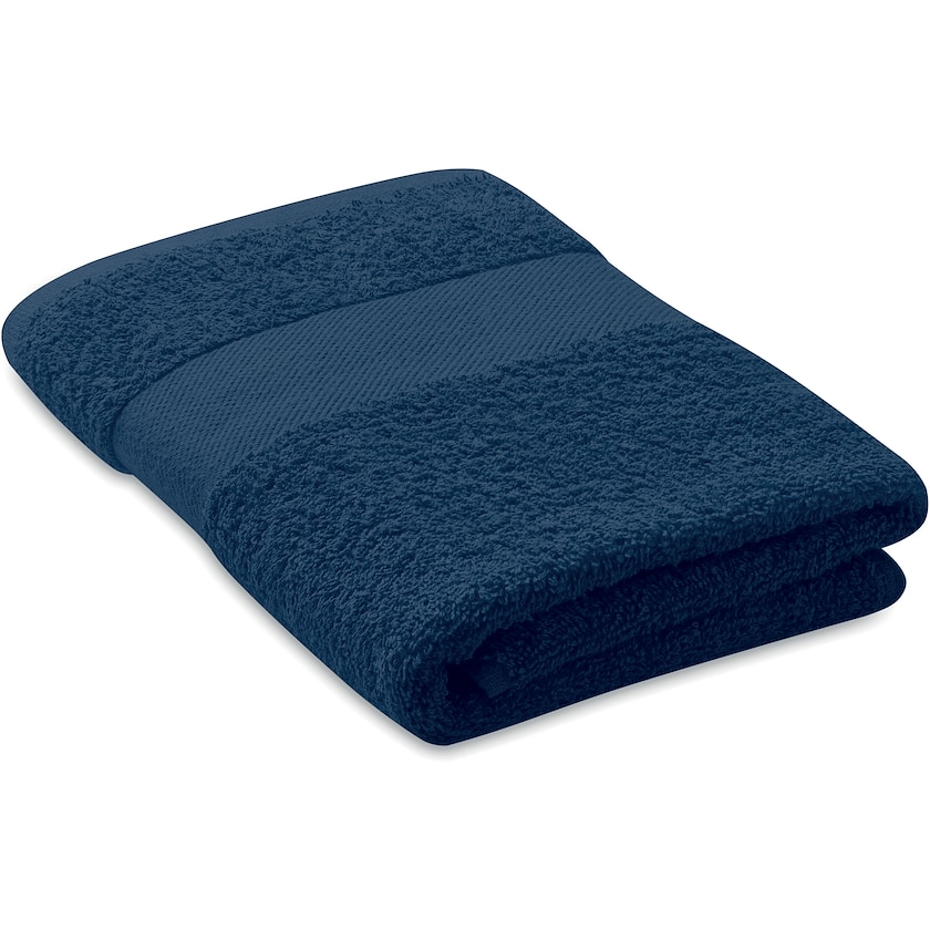 Una toalla pequeña de algodón ecológico. La toalla se fabrica con un exclusivo tejido de 360 gramos de 100% algodón ecológico. La impresión o el bordado se realizan en el borde de la toalla.