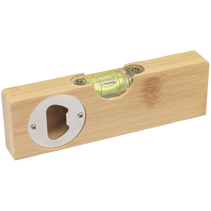 Nivel de agua de bambú con abrebotellas integrado. ¡Haz el trabajo y luego disfruta de un buen trago! El bambú es un material natural y ecológicamente sostenible. Por eso los colores y las dimensiones pueden variar ligeramente de un producto a otro. Se entrega en una caja de regalo individual. Se puede personalizar con impresión o grabado láser.